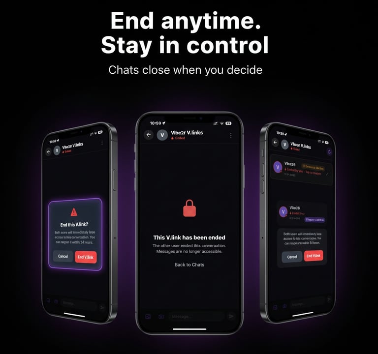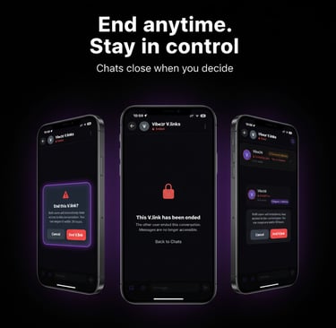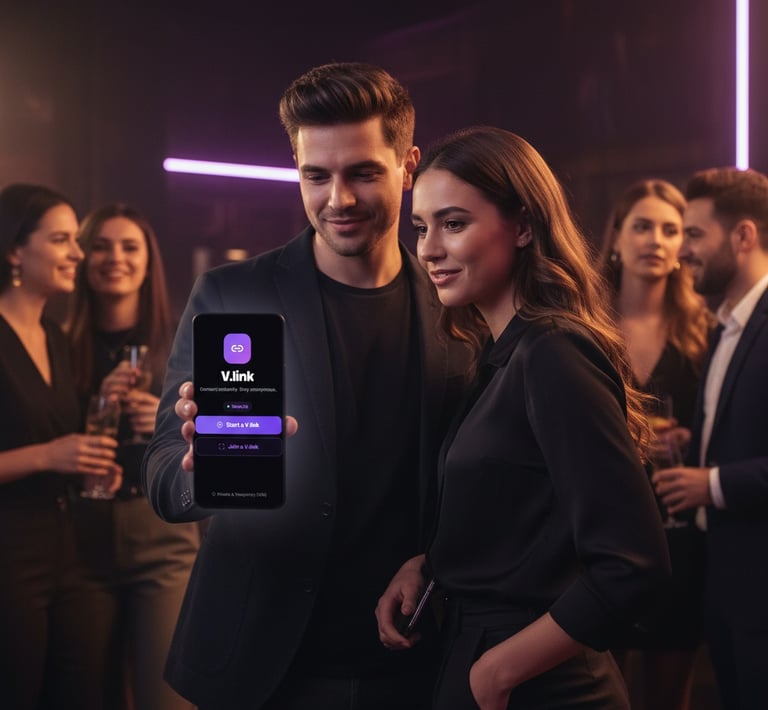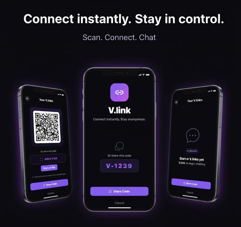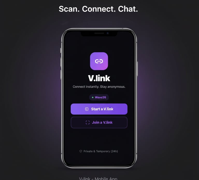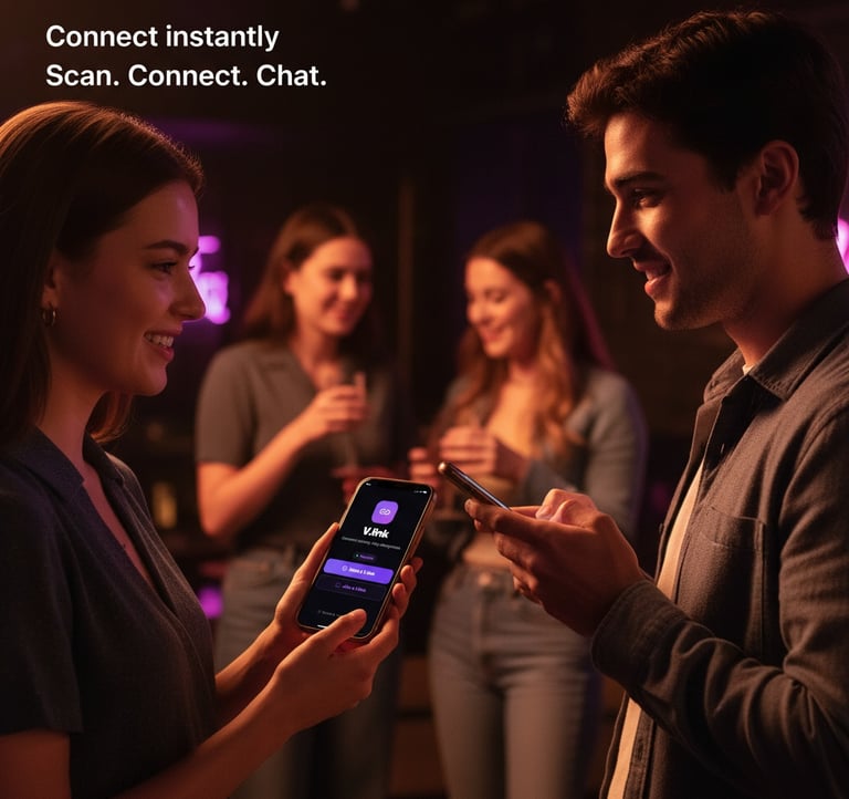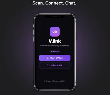 v.link lets you connect instantly with people around you—no accounts, no profiles, just real conversations that disappear when you want.