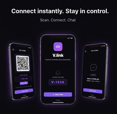 Quickly scan or share a v.link QR code to start connecting instantly.